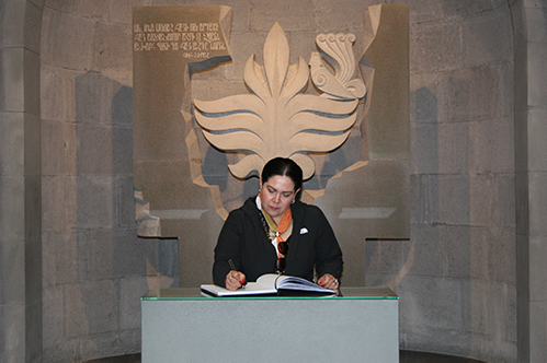Հյուրերը շրջեցին նաև Հայոց ցեղասպանության թանգարանում, որտեղ ՀՑԹԻ ավագ էքսկուրսավար Անժել Թևեքելյանի ուղեկցությամբ ծանոթացան մշտական և ժամանակավոր ցուցադրություններին, որից հետո պատվիրակության անդամները գրառումներ կատարեցին Պատվավոր հյուրերի հուշամատյանում: