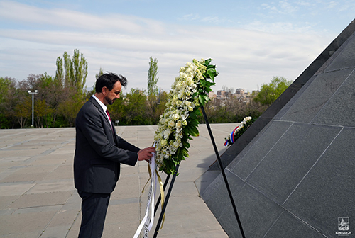 Պարոն Գրեգորի Դուսեն ծաղկեպսակ դրեց Հայոց ցեղասպանության զոհերի հիշատակը հավերժացնող հուշակոթողին, այնուհետև հյուրերը ծաղիկներ դրեցին անմար կրակի մոտ և մեկ րոպե լռությամբ հարգեցին Հայոց ցեղասպանության անմեղ զոհերի հիշատակը:
