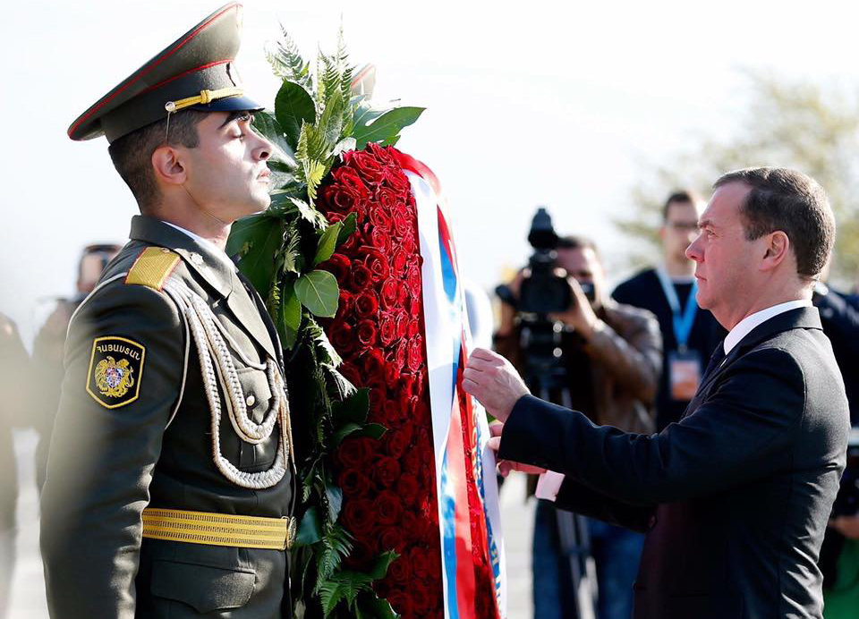 Նիկոլայ Ռիժկովն ու ռուս խորհրդարանականները ծաղիկներ խոնարհեցին անմար կրակի մոտ և լռությամբ հարգեցին Սուրբ նահատակների հիշատակը։