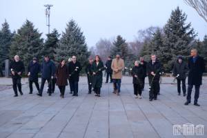 A group of Armenian National Assembly deputies visited Tsitsernakaberd to pay tribute to the victims of the 1990 Baku pogroms. They laid flowers at the khachkar erected in memory of the victims of those massacres organised by the Azerbaijani government.