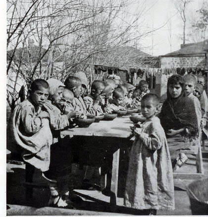 Армянские дети в городе Игдир, кушающие свою порцию варенного риса, предоставленную Амеркомом