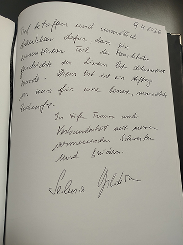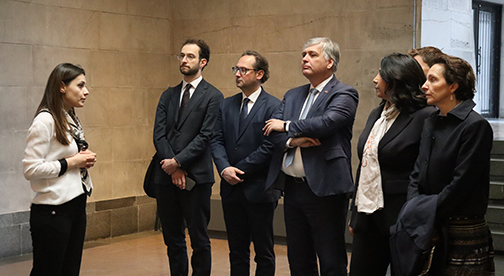 Հյուրերին ողջունեց և այցի ընթացքում ուղեկցեց Հայոց ցեղասպանության թանգարան-ինստիտուտի տնօրենի ժամանակավոր պաշտոնակատար Հրաչյա Թաշչյանը: Տիկին Մարտինա ֆոն Քյունսբերգ-Սարրեն ծաղկեպսակ դրեց Հայոց ցեղասպանության զոհերի հիշատակը հավերժացնող հուշակոթողին, այնուհետև պատվիրակության անդամները ծաղիկներ դրեցին անմար կրակի մոտ և մեկ րոպե լռությամբ հարգեցին Հայոց ցեղասպանության անմեղ զոհերի հիշատակը: Նրանք շրջեցին Հայոց ցեղասպանության թանգարանում, որտեղ ՀՑԹԻ-ի թանգարանային աշխատանքների գծով փոխտնօրեն Լուսինե Աբրահամյանի ուղեկցությամբ ծանոթացան մշտական և ժամանակավոր ցուցադրություններին: Շրջայցի վերջում պատվիրակության անդամները գրառումներ կատարեցին Պատվավոր հյուրերի հուշամատյանում: