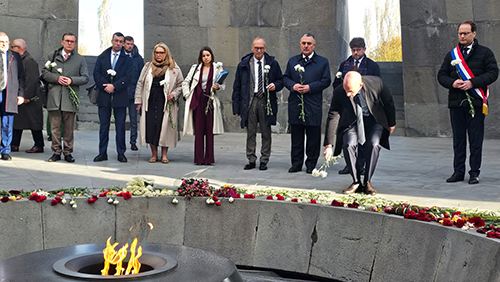 Բենժամեն Հադադը ծաղկեպսակ է դրել հուշահամալիրի պատին, ապա պատվիրակության անդամները ծաղիկներ են դրել անմար կրակի մոտ, մեկ րոպե լռությամբ հարգել Հայոց ցեղասպանության զոհերի հիշատակը: