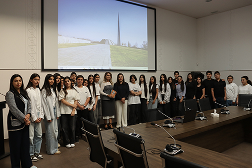 Կրթական ծրագրի շրջանակներում ուսանողները շրջեցին նաև Հայոց ցեղասպանության թանգարանի ցուցասրահներով, որտեղ ՀՑԹԻ ավագ էքսկուրսավար Անժել Թևեքելյանի ուղեկցությամբ ծանոթացան թանգարանային ցուցադրություններին: