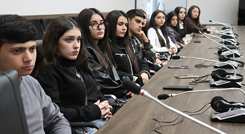 Նոյեմբերի 27-ին ՀՑԹԻ գիտաժողովների սրահում տեղի ունեցավ դպրոցականների համար մշակված կրթական ծրագրերի 2025 թ. հերթական հանդիպումը: Այս անգամ ՀՑԹԻ-ն հյուրընկալել էր Արարատի Տարածաշրջանային պետական քոլեջի սաներին: Նրանք ներկայացված թեմաներից ընտրել էին ՀՑԹԻ Վահագն Դադրյանի անվան համեմատական ցեղասպանագիտության բաժնի վարիչ, պ.գ.թ. Սուրեն Մանուկյանի «Հայոց ցեղասպանության հիմնական դերակատարները՝ ոճրագործներ, անտարբերներ և փրկողներ/զոհեր, համագործակցողներ և դիմադրողներ» վերնագրով դասախոսությունը: