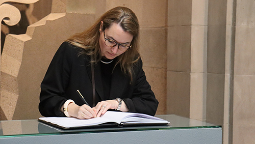 Հուշահամալիրից հետո հյուրերը շրջել են թանգարանում՝ էքսկուրսավար Մերի Եղիկյանի ուղեկցությամբ: Վերջում նրանք գրառումներ են կատարել թանգարանի հուշամատյանում: