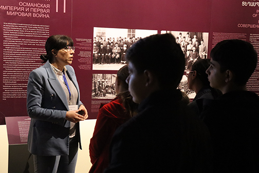 Կրթական ծրագրի շրջանակներում ուսանողները շրջեցին նաև Հայոց ցեղասպանության թանգարանի ցուցասրահներով, որտեղ ՀՑԹԻ ավագ էքսկուրսավար Անժել Թևեքելյանի ուղեկցությամբ ծանոթացան թանգարանային ցուցադրություններին: