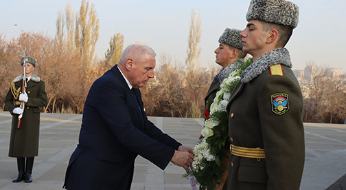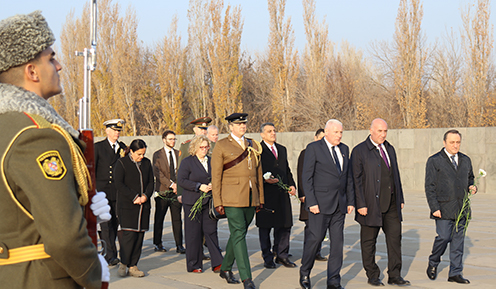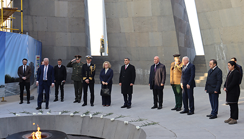 Lord Vernon Rodney Coaker laid a wreath at the memorial immortalizing the victims of the Armenian Genocide, after which members of the delegation laid flowers at the Eternal Fire and observed a minute of silence to honor the memory of the innocent victims of the Armenian Genocide.