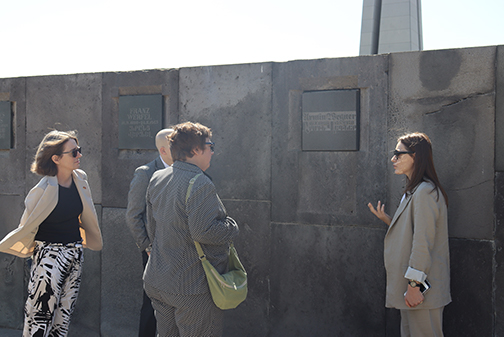 Lusine Abrahamyan les a accompagnés jusqu'au Mur commémoratif, derrière lequel reposent, dans des niches spéciales, de petites jarres remplies de terre provenant des tombes de plusieurs personnalités étrangères, hommes politiques, intellectuels et missionnaires qui ont protesté contre les massacres et le génocide des Arméniens perpétrés par le gouvernement turc à la fin du XIXe et au début du XXe siècle. Les invités ont écouté avec grand intérêt les interventions, notamment celles des Allemands Johannes Lepsius et Armin Wegner, pro-Arméniens.