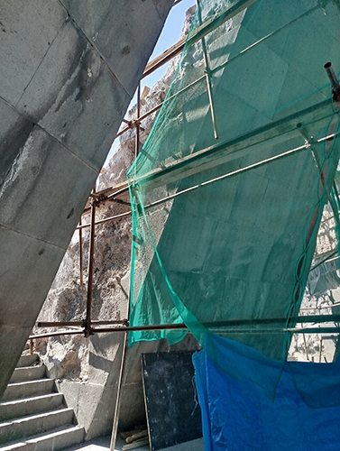 Ces travaux permettront de résoudre un problème de drainage de plusieurs décennies, qui entraînait la détérioration des pierres des piliers, créant un risque de chutes de pierres, et un problème constant d'infiltration des eaux de pluie dans les bâtiments administratifs et du musée.
