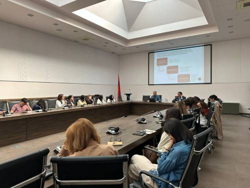 Ce cours était organisé par l'Université d'État d'Erevan, les ambassades de France et d'Allemagne en République d'Arménie et le Mémorial de la Shoah à Paris. La deuxième journée du séminaire s'est déroulée au Musée-Institut de génocide des Arméniens, le thème étant l'étude du génocide des Arméniens et des questions du Haut-Karabakh. Ce jour-là, Sourèn Manoukian, responsable du département d'études comparatives sur le génocide du MIGA, titulaire d'un doctorat, a prononcé une conférence intitulée « Comment est-il humainement possible, le génocide contre les Arméniens ? ». La deuxième intervenante, Élodie Gavriloff, a présenté une conférence intitulée « Le nettoyage ethnique de l'Artsakh ». À la fin, une table ronde intitulée « Mémorial du génocide des Arméniens » a été organisée, à laquelle ont participé le célèbre chercheur français du génocide Yves Ternon, la directrice du MIGA Edita Gzoyan et le chef du département d'étude de la répression des Arméniens dans les régions peuplées d'Arméniens d'Artsakh, du Nakhitchevan et d'Azerbaïdjan, Harutyun Marutyan.
