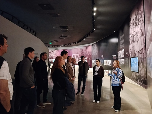 Гостей приветствовала директор Музея-института Геноцида армян Эдита Гзоян. Она проводила гостей к мемориалу Геноцида армян и представила историю создания мемориального комплекса. Директор МИГА также рассказала историю трех хачкаров, воздвигнутых на территории мемориального комплекса Цицернакаберд в память об армянах, погибших в резне, организованной азербайджанским правительством в городах Сумгаит, Кировабад (Гандзак), Баку в прошлом веке, и истории пяти борцов за свободу во время Арцахской войны, похороненных около Стены памяти, подчеркнув тем самым связь между случившимися событиями и Геноцидом армян.