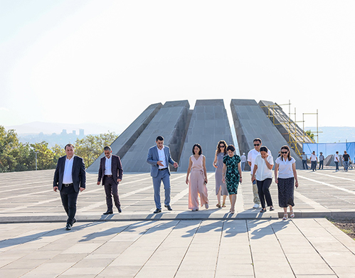 Ход работ представили директор Музея-института Геноцида армян Эдита Гзоян, члены архитектурной группы по капитальной реконструкции мемориала во главе с соавтором проекта Сашуром Калашяном, представители подрядной организации, осуществляющей строительные работы, а также ответственные должностные лица.