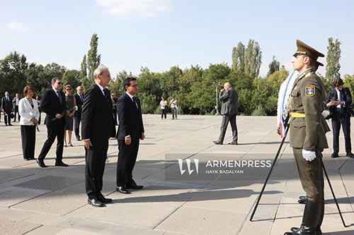 Ֆրանսիայի ԱԳ նախարար Ստեֆան Սեժուրնեն ծաղկեպսակ դրեց Հայոց ցեղասպանության զոհերի հիշատակը հավերժացնող հուշակոթողին, որից հետո հյուրերը անմար կրակի մոտ մեկ րոպե լռությամբ հարգեցին Հայոց ցեղասպանության անմեղ զոհերի հիշատակը:
