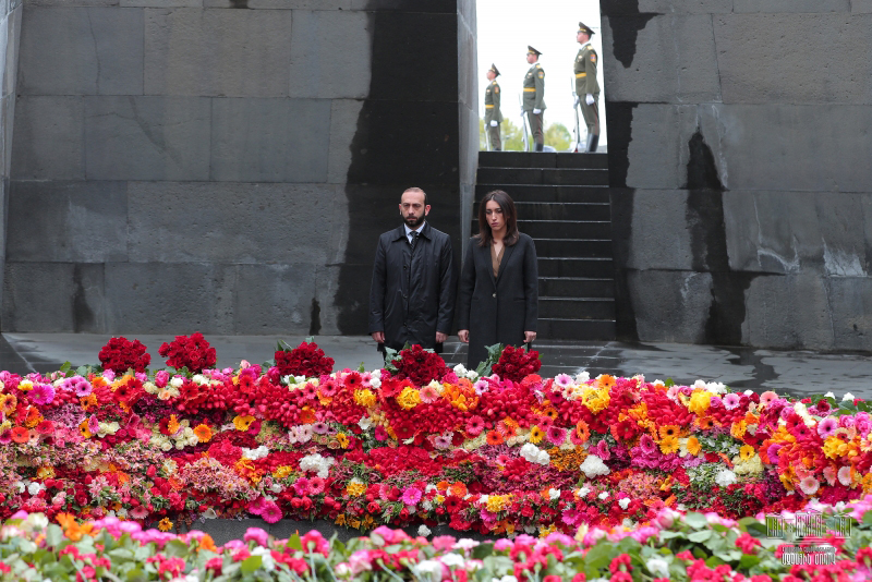 Հայոց ցեղասպանության հուշահամալիրում զոհերի հիշատակին հարգանքի տուրք մատուցեցին ՀՀ նախագահ Արմեն Սարգսյանը, ՀՀ վարչապետ Նիկոլ Փաշինյանը տիկնոջ՝ Աննա Հակոբյանի հետ, ՀՀ Ազգային Ժողովի նախագահ Արարատ Միրզոյանը նույնպես տիկնոջ՝ Գոհար Աբաջյանի հետ, Ամենայն Հայոց Կաթողիկոս Գարեգին Բ-ն Էջմիածնի միաբանների ուղեկցությամբ, Արցախի Հանրապետության նախագահ Արայիկ Հարությունյանը: Պետական այրերը և հոգևոր առաջնորդը ծաղկեպսակներ դրեցին Հայոց ցեղասպանության զոհերի հիշատակը հավերժացնող հուշակոթողին, ապա ծաղիկներ՝ Անմար կրակի մոտ: Վեհափառ Հայրապետի նախագահությամբ կատարվեց Հայոց ցեղասպանության սուրբ նահատակների բարեխոսական կարգ: