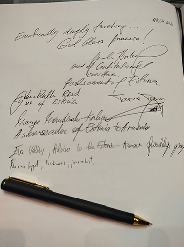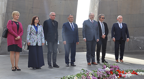 Էստոնիայից ժամանած պատվիրակության անդամները ծաղիկներ դրեցին անմար կրակի մոտ և մեկ րոպե լռությամբ հարգեցին Հայոց ցեղասպանության զոհերի հիշատակը: