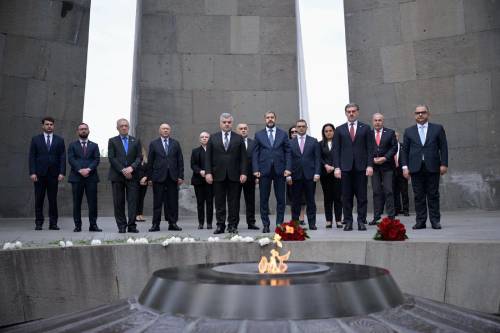Հյուրերին դիմավորեց Հայոց ցեղասպանության թանգարան-ինստիտուտի տնօրեն Էդիտա Գզոյանը և ուղեկցեց դեպի Հայոց ցեղասպանության հուշահամալիր՝ ներկայացնելով հուշահամալիրի ստեղծման պատմությունը: