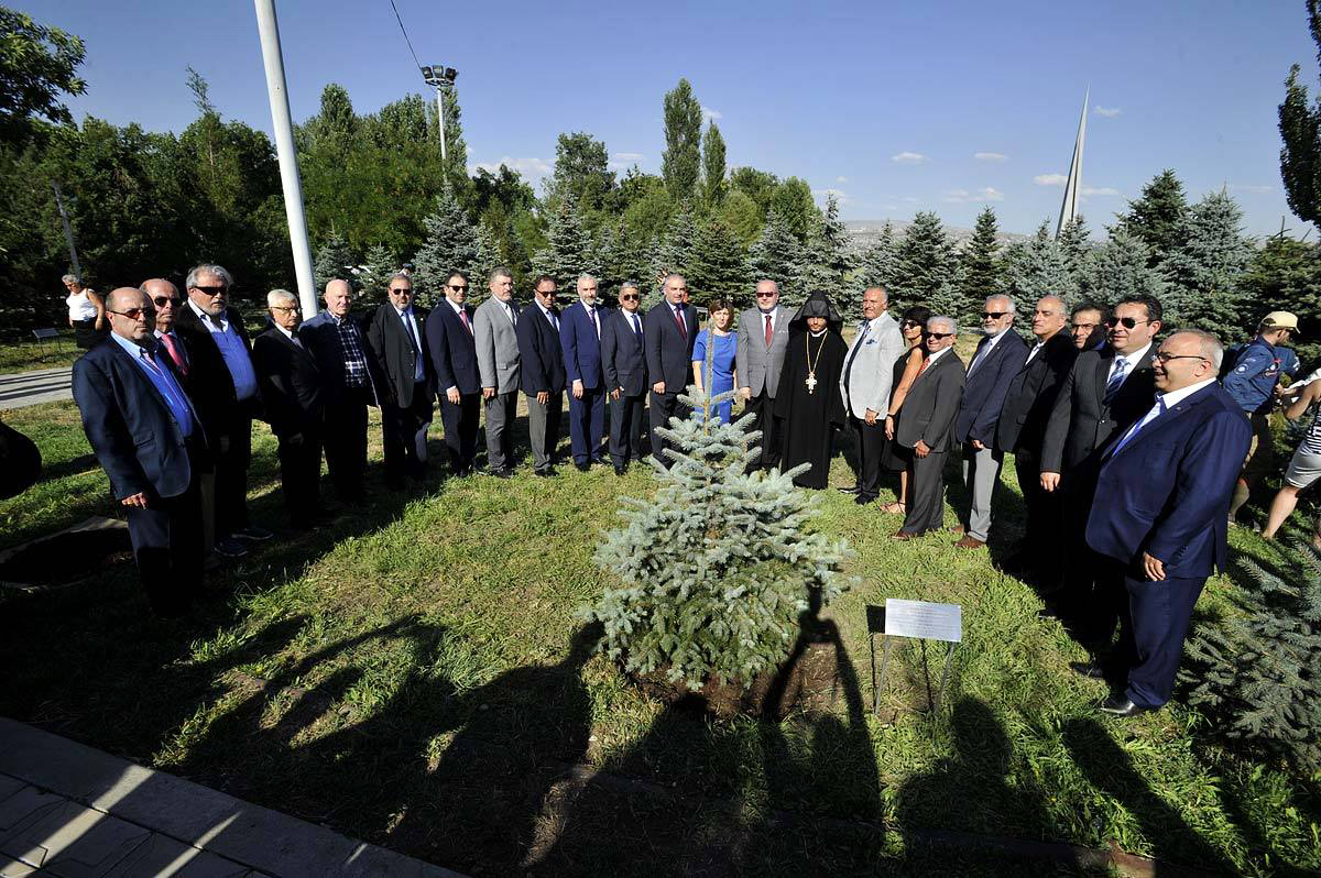 Այնուհետև բոլոր ներկաներով մասնակցեցին Հիշողության պուրակում ծառատունկին՝ Անթիլիասից, Պոլսից, Փարիզից և Արարատ լեռից բերված հողը խառնվեց պուրակի հողին: Տնկվեց արծաթափայլ եղևնի՝ ի հիշատակ Հայոց ցեղասպանության զոհերին՝ ՀՄԸՄ 100-ամյակի առթիվ: