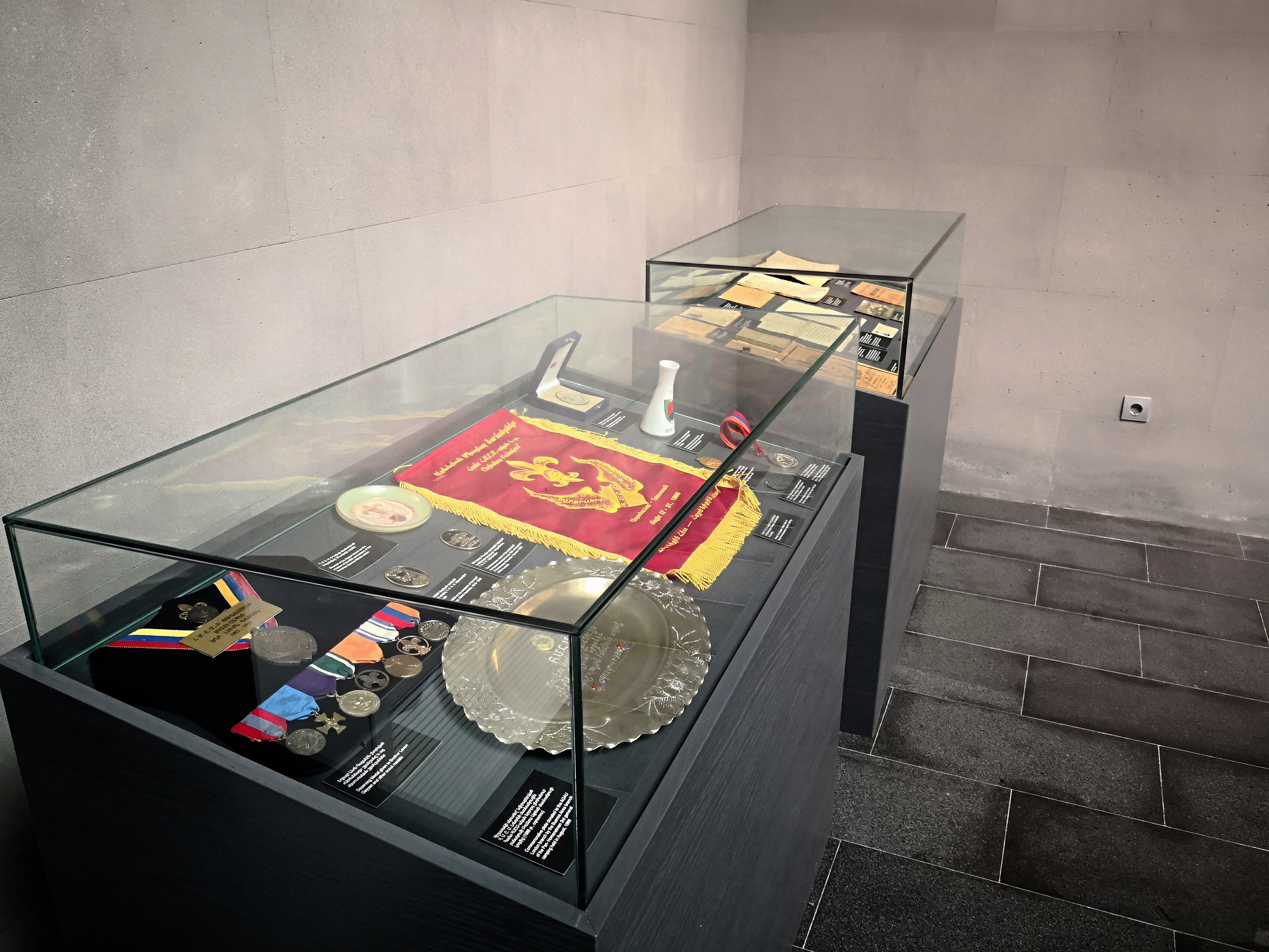 Այնուհետև ներկաները ծանոթացան ժամանակավոր ցուցադրությանը, Հայկ Դեմոյանը մանրամասն ներկայացրեց ցուցանմուշների ու ցուցապաստառների պատմությունը: