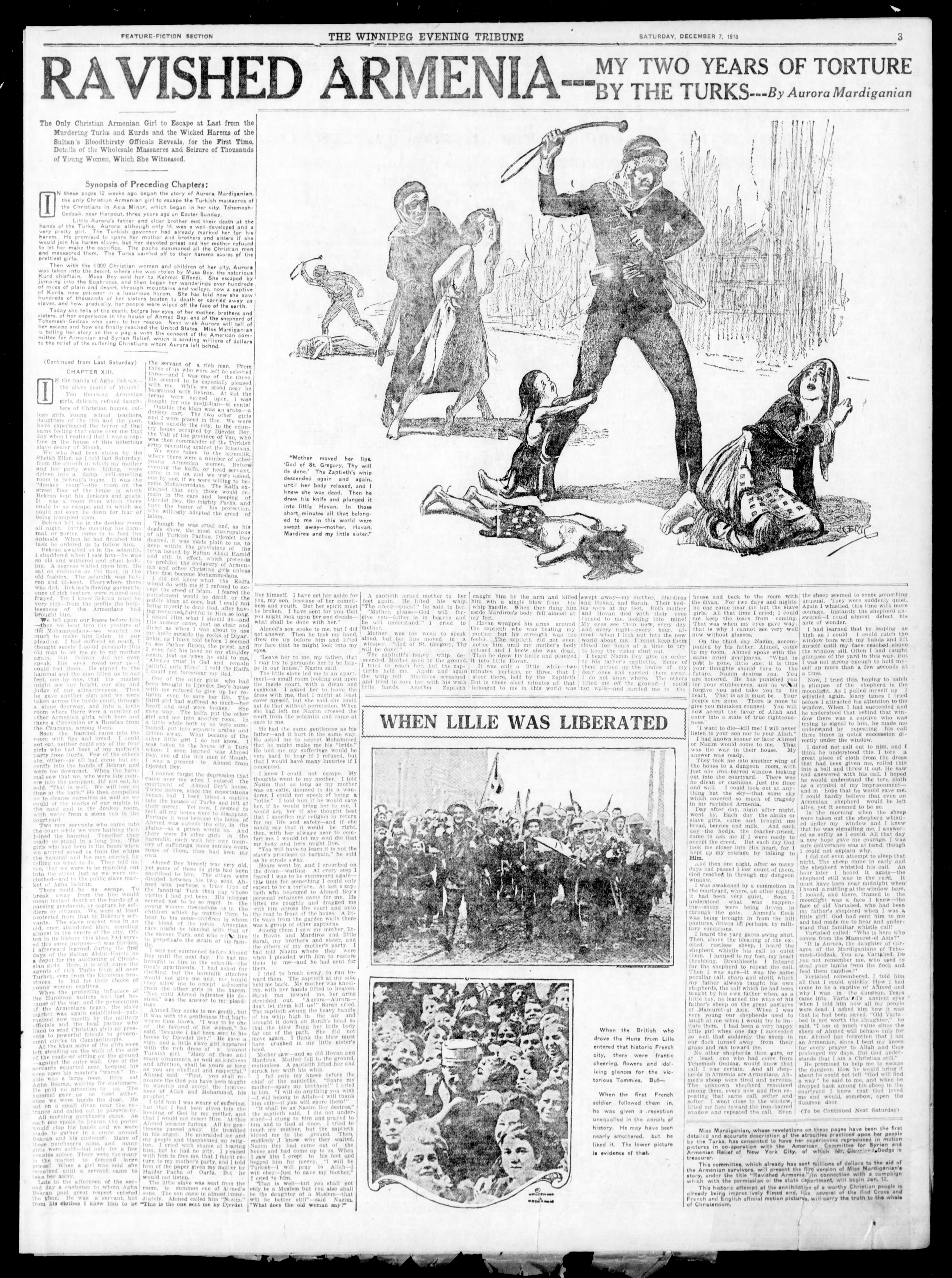 Ավրորա Մարդիգանյանի պատմությունը The Winnipeg Evening Tribune թերթում, 7 դեկտեմբերի 1918 թ.