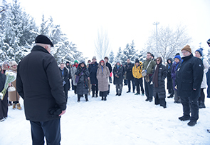 Հյուրերին դիմավորեց Հայոց ցեղասպանության թանգարան-ինստիտուտի թանգարանային աշխատանքների գծով փոխտնօրեն Լուսինե Աբրահամյանը: Նա հյուրերին ուղեկցեց դեպի Հայոց ցեղասպանության հուշահամալիր՝ ներկայացնելով հուշահամալիրի ստեղծման պատմությունը: ՀՑԹԻ փոխտնօրենն անդրադարձ կատարեց նաև Ծիծեռնակաբերդի տարածքում անցյալ դարավերջին Ադրբեջանի Սումգայիթ, Կիրովաբադ (Գանձակ), Բաքու քաղաքներում ադրբեջանական կառավարության կազմակերպած կոտորածներին զոհ գնացած հայերի հիշատակին տեղադրված երեք խաչքարերի և Արցախյան գոյամարտի տարիներին Հուշապատի դիմացի հատվածում հուղարկավորված հինգ ազատամարտիկների պատմություններին՝ շեշտելով կապը տեղի ունեցածի և Հայոց ցեղասպանության միջև: