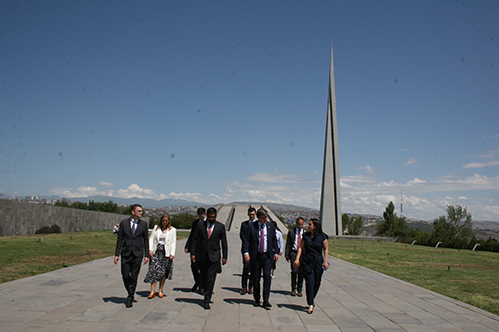James O'Brien and Kumar Iyer laid wreaths at the memorial complex, after which the accompanying guests put flowers at the Eternal Fire and observed a minute’s silence in memory of the innocent martyrs of the Armenian Genocide.
