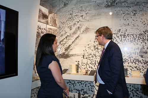 The guests then toured the Armenian Genocide Museum, accompanied by AGMI, AGMI Deputy Scientific Director Edita Gzoyan, and became acquainted with the permanent and temporary exhibitions. Afterwards James O'Brien left a note in the Memory Book for Honorable Guests.