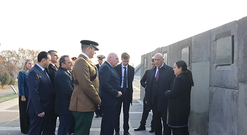 Lord Vernon Rodney Coaker laid a wreath at the memorial immortalizing the victims of the Armenian Genocide, after which members of the delegation laid flowers at the Eternal Fire and observed a minute of silence to honor the memory of the innocent victims of the Armenian Genocide.