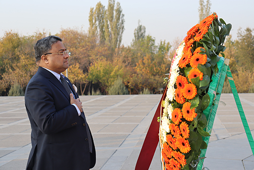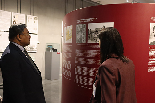 Mr. Sibi George laid a wreath at the monument commemorating the victims of the Armenian Genocide. Afterwards, the guests placed flowers near the Eternal Flame and honored the memory of the innocent martyrs of the Armenian Genocide with a minute of silence.