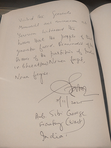 Following the tour, Mr. Sibi George made an entry in the Museum’s Guest Book of Honor.