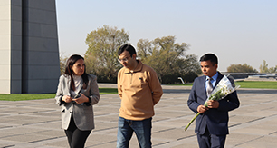 They were greeted by Lusine Abrahamyan, AGMI Deputy Director for Museum affairs. She guided the visitors to the Memorial Complex, sharing the history of its establishment. The Deputy Director also spoke about three khachkars (cross-stones) installed in the Tsitsernakaberd area, which commemorate the Armenians who were victims of the massacres organized by the Azerbaijani government in the cities of Sumgait, Kirovabad (Gandzak), and Baku at the end of the last century. She also presented the stories of five freedom fighters who were buried near the Memorial Wall during the Artsakh Liberation War, emphasizing the connection between these events and the Armenian Genocide.