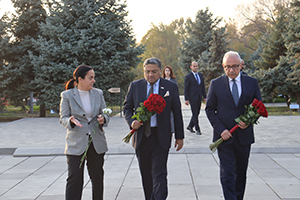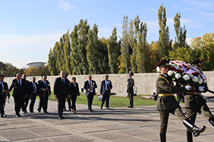 The members of the Northern European and Baltic delegations laid wreaths at the memorial dedicated to the victims of the Armenian Genocide. Afterward, they placed flowers around the Eternal Fire and observed a minute of silence in memory of the innocent martyrs.