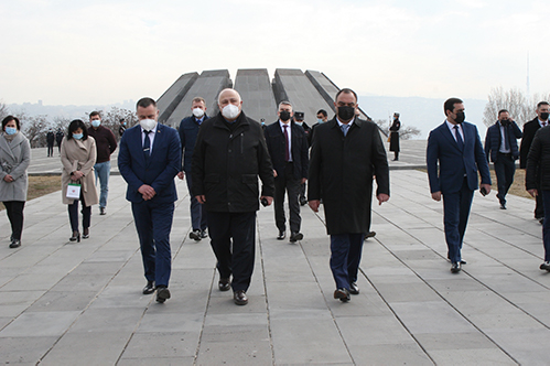 Les fonctionnaires des deux pays ont déposé des gerbes au Mémorial aux victimes du génocide des Arméniens, puis les invités ont déposé des fleurs à la flamme éternelle et observé une minute de silence à la mémoire des victimes innocentes du génocide des Arméniens.