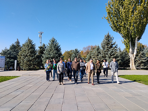 Гостей приветствовала директор Музея-института Геноцида армян Эдита Гзоян. Она проводила гостей к мемориалу Геноцида армян и представила историю создания мемориального комплекса. Директор МИГА также рассказала историю трех хачкаров, воздвигнутых на территории мемориального комплекса Цицернакаберд в память об армянах, погибших в резне, организованной азербайджанским правительством в городах Сумгаит, Кировабад (Гандзак), Баку в прошлом веке, и истории пяти борцов за свободу во время Арцахской войны, похороненных около Стены памяти, подчеркнув тем самым связь между случившимися событиями и Геноцидом армян.