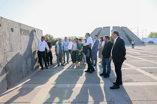 Ход работ представили директор Музея-института Геноцида армян Эдита Гзоян, члены архитектурной группы по капитальной реконструкции мемориала во главе с соавтором проекта Сашуром Калашяном, представители подрядной организации, осуществляющей строительные работы, а также ответственные должностные лица.