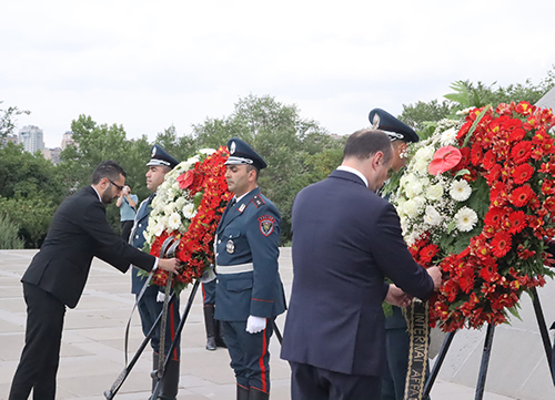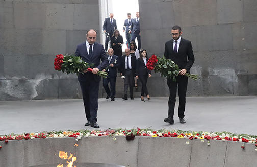Официальные лица обеих стран возложили венок к памятнику жертвам Геноцида армян, затем гости возложили цветы к вечному огню и почтили память невинных жертв минутой молчания.